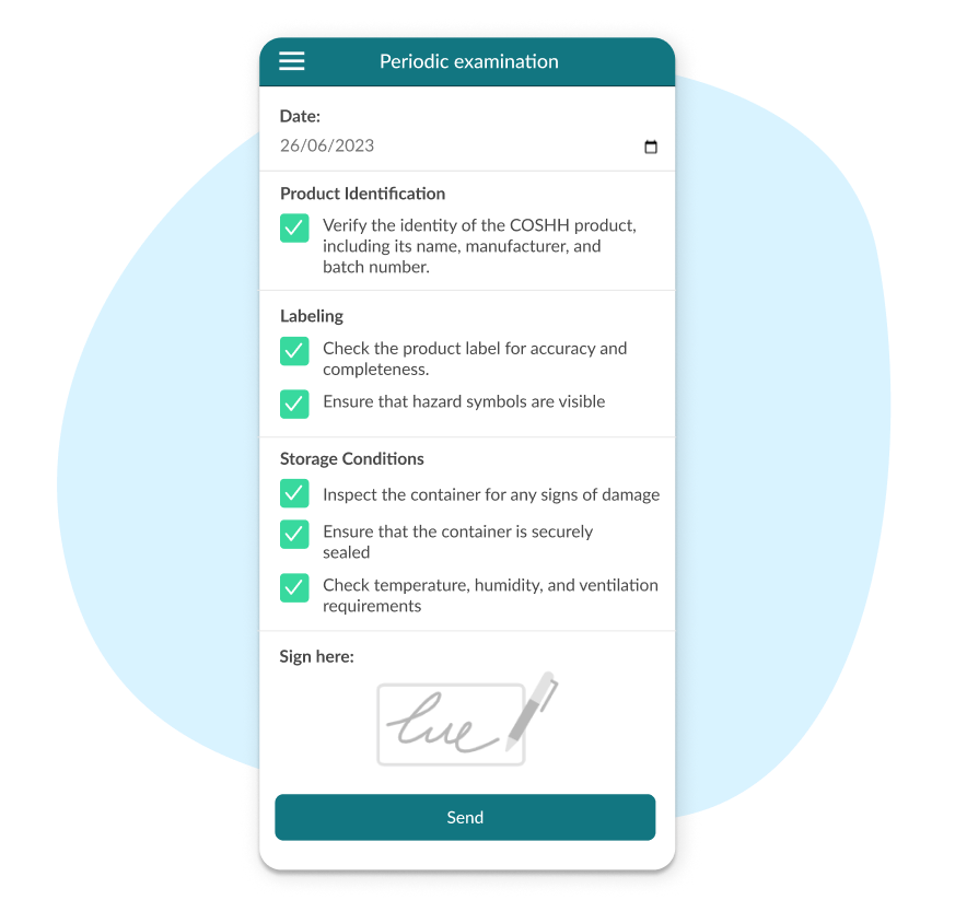 Digitalice su gestión de COSHH sin esfuerzo. Asegure el manejo y almacenamiento seguro de sustancias peligrosas con nuestra solución intuitiva sin necesidad de aplicación.