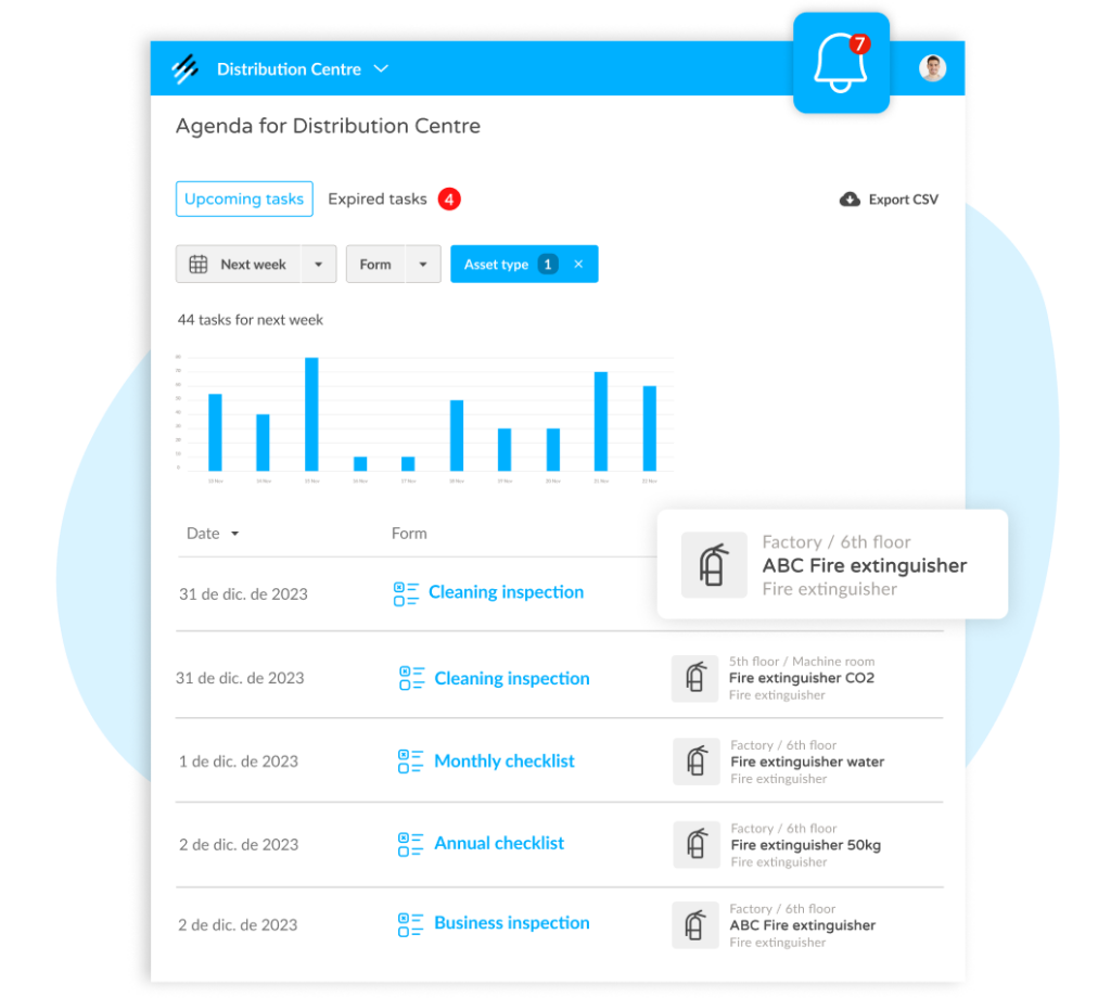 Agenda inspecciones periódicas y asegúrate de que ninguna revisión crítica se quede sin realizar, incluso en entornos operativos complejos